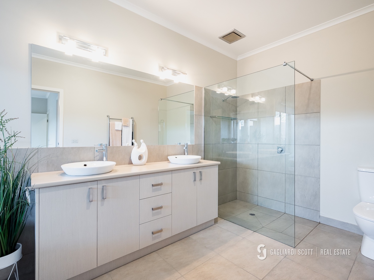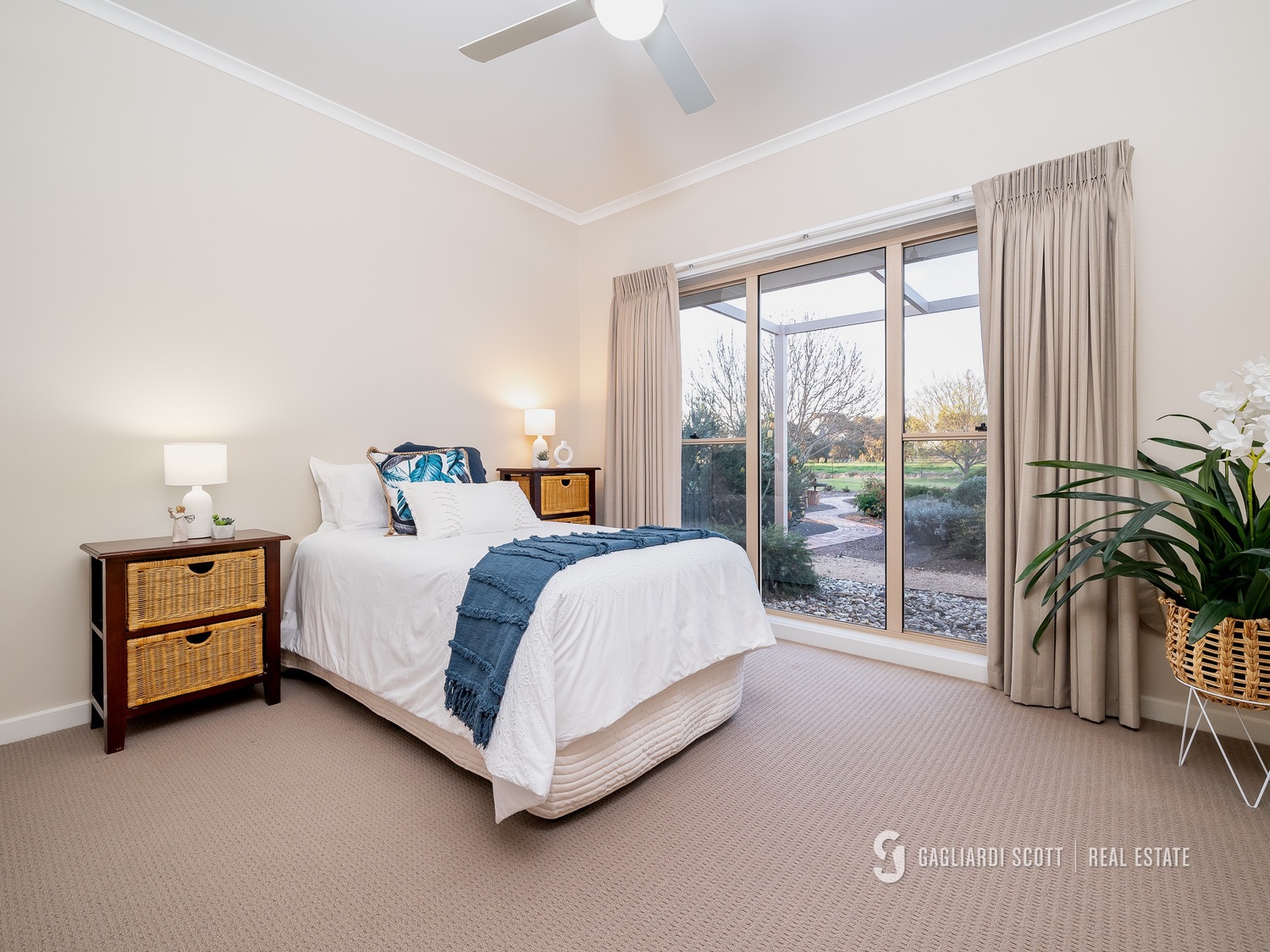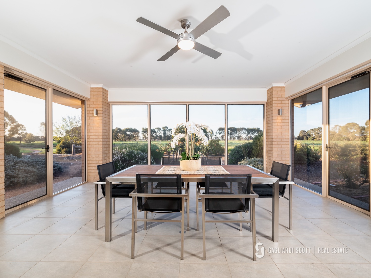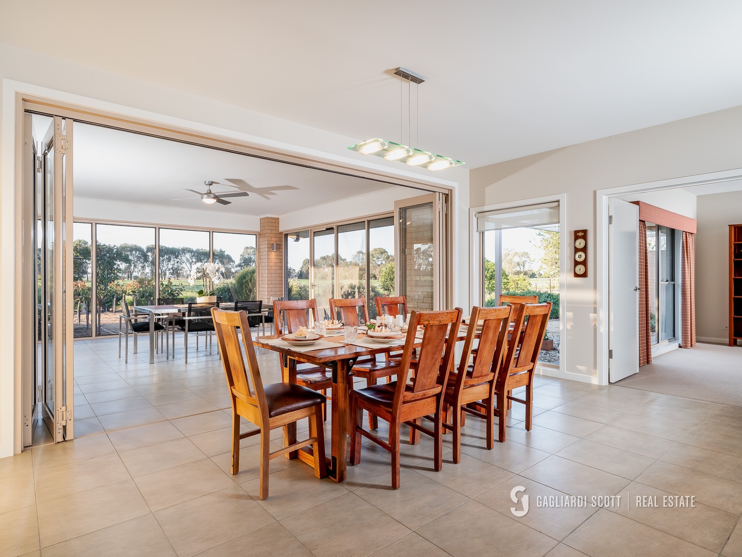 • Access: Central laneway for easy movement between paddocks. • Shelter: Good tree lines providing shade and shelter for cattle. House Features: • Design: Modern, architect-designed home crafted by quality tradesmen. • Master Suite: Spacious with a large walk-in robe and a stylish ensuite featuring a shower and spa bath, overlooking the courtyard. • Bedrooms: Three additional bedrooms with built-in robes • Living Spaces: • Open kitchen/living area with stone benchtops and quality appliances. • Second living space with an enclosed entertaining area, perfect for family gatherings. • Bathrooms: Well-appointed main bathroom with ample storage. • Climate Control: Refrigerated ducted system for heating and cooling; split system in the master bedroom. • Landscaping: Low-maintenance native gardens with a lovely outlook.