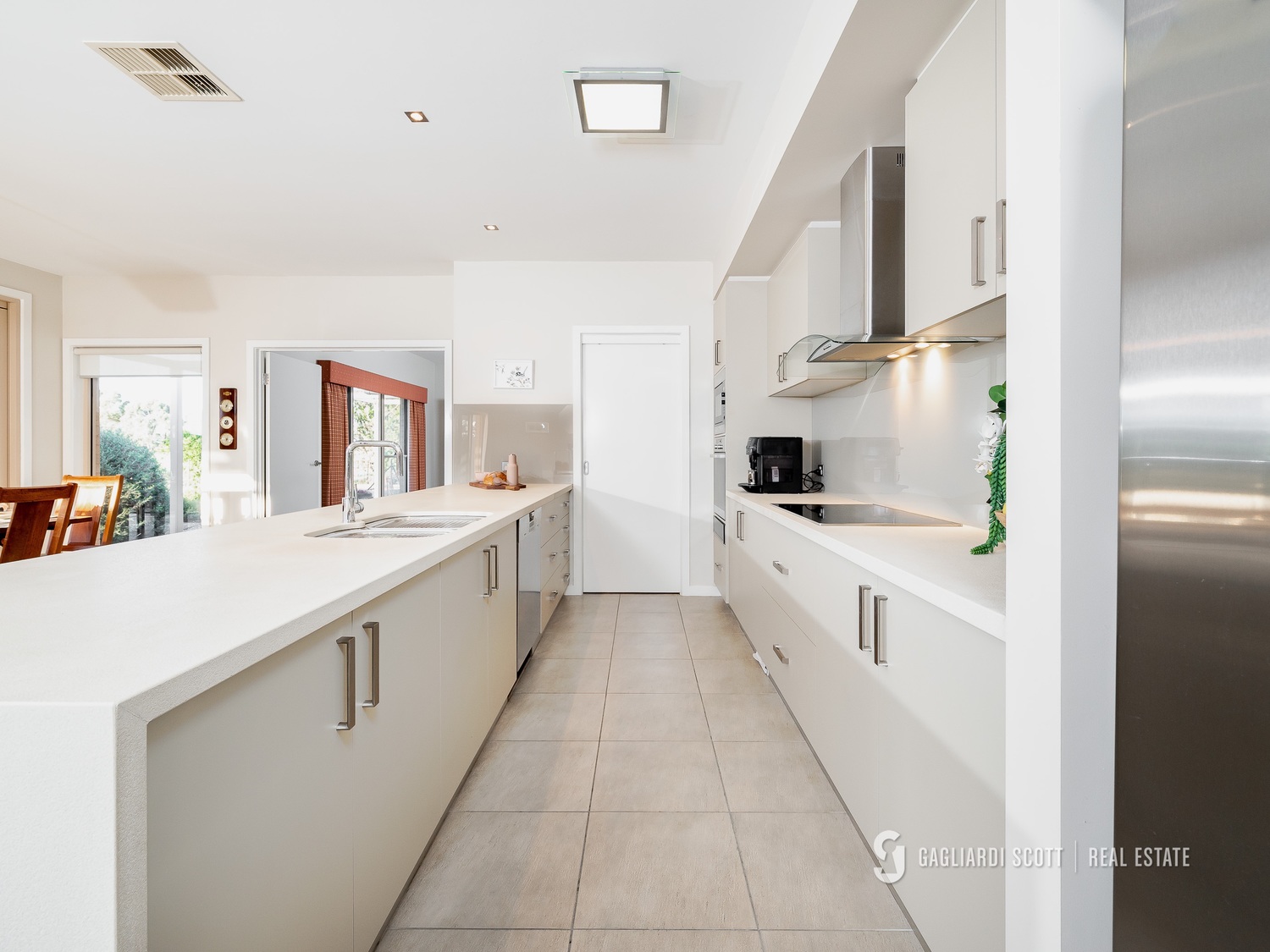Entertaining is a delight in the open-plan kitchen and living area, featuring a stone benchtop and high-quality appliances, which flows into a second living space and an enclosed area perfect for family gatherings. A well-appointed main bathroom and generous storage ensure practicality matches style. Climate control is seamless with a refrigerated ducted system and a split system in the master bedroom.
