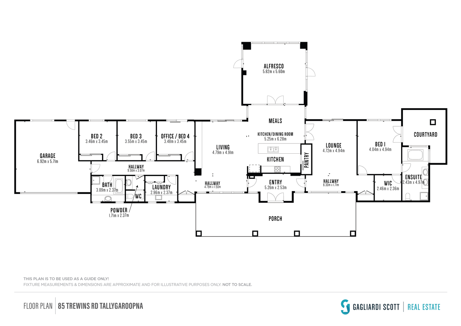 The heart of this rural haven is a beautifully designed modern home, crafted by expert tradesmen. The master bedroom is an oasis of luxury, boasting a capacious walk-in robe and an elegant ensuite with a soothing spa bath that offers courtyard views. Three additional well-proportioned bedrooms, complete with built-in robes, provide ample space for family living.